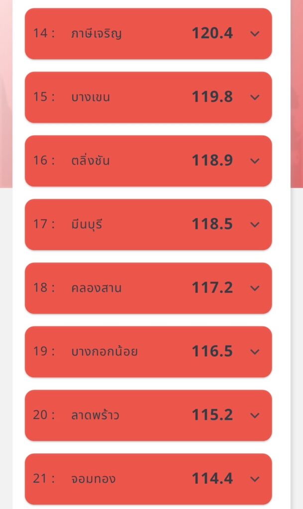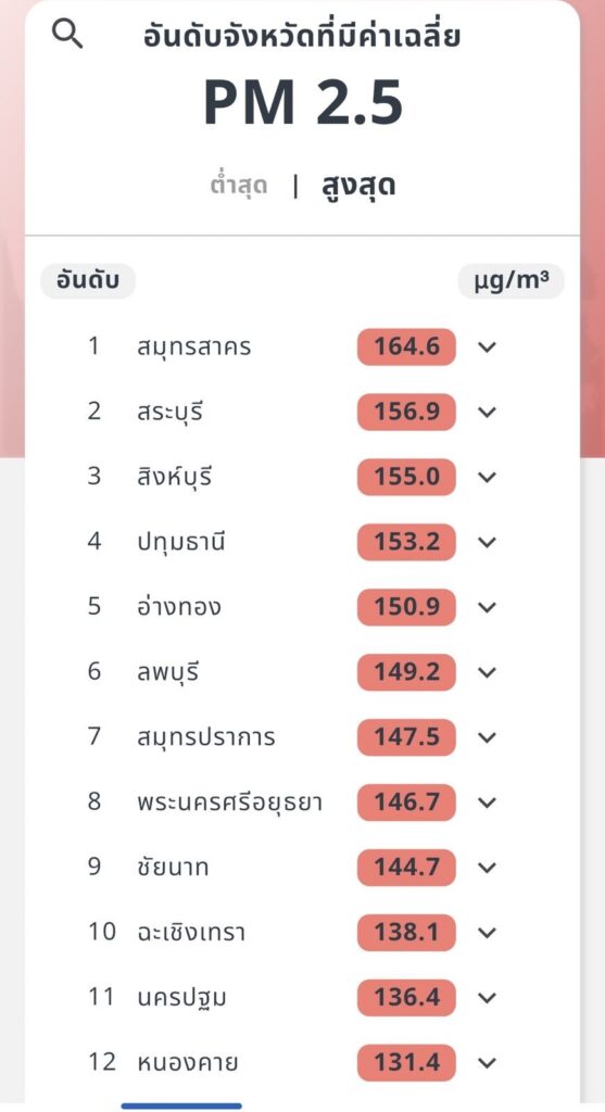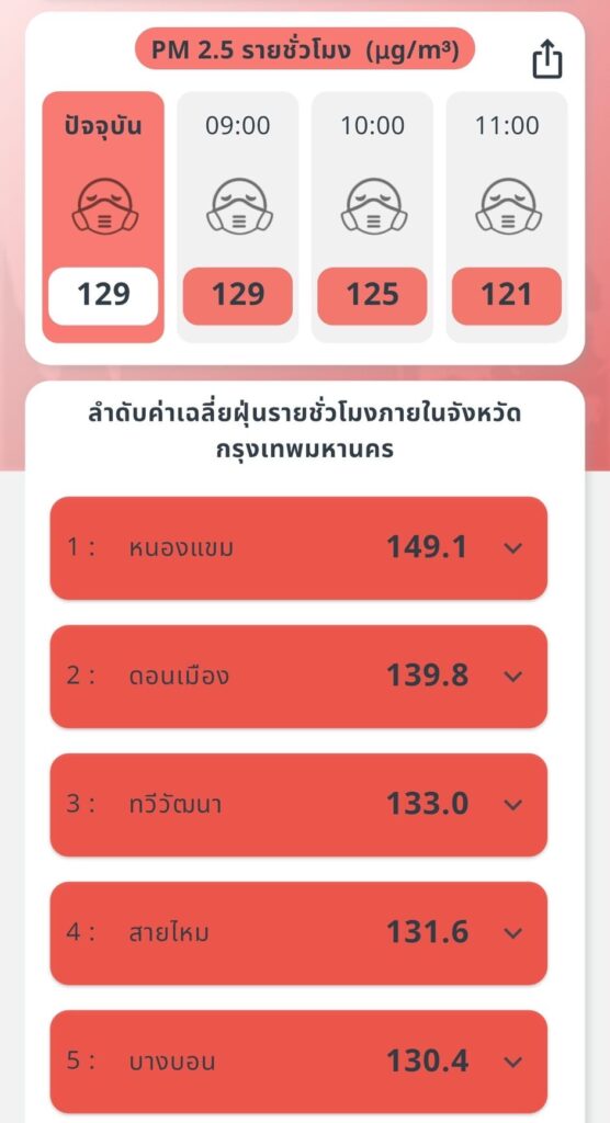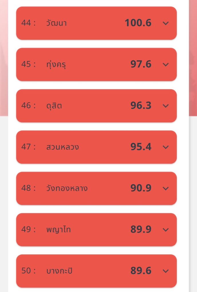 ฝุ่นเช้านี้กทม.แดงกว่าเมื่อวาน ค่าเกินร้อย 44 เขต หนองแขม ดอนเมือง อาการหนักมาก