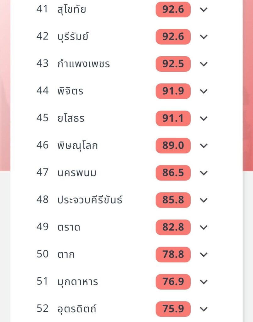 ด้านภาพรวมประเทศไทยในรอบเวลาเดียวกัน พบค่าฝุ่น PM2.5 ที่ส่งผลกระทบต่อสุขภาพและระบบทางเดินหายใจในระดับสีแดงกว่า 50 จังหวัด ซึ่งกระจายอยู่ในทั่วทุกภูมิภาค และพบค่า PM2.5 เริ่มผลกระทบต่อสุขภาพในระดับสีส้ม ในพื้นที่ภาคเหนือ ภาคใต้ และภาคตะวันออกเฉียงเหนือบางจังหวัด