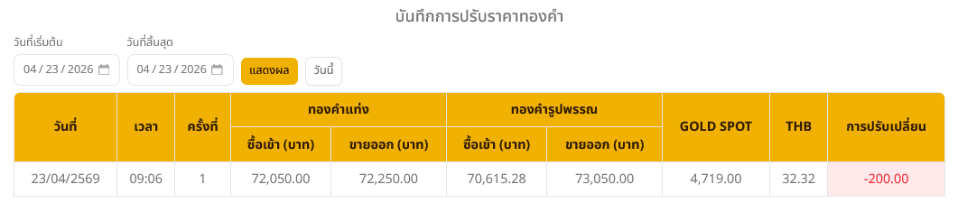 ราคาทองวันนี้ (23 เม.ย. 69) ปรับลง 200 บาท ทองรูปพรรณบาทละ 73,050 บาท