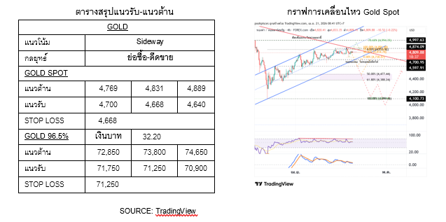 สำหรับกลยุทธ์การลงทุน เปิดสถานะซื้อ หากราคาไม่หลุด $4,700-4,668 (ตัดขาดทุนสถานะซื้อหากราคาหลุด $4,668) ขายทำกำไร หากราคาไม่ผ่าน $4,769-4,831 หากผ่าน $4,831 ชะลอไปขายที่ต้านถัดไป