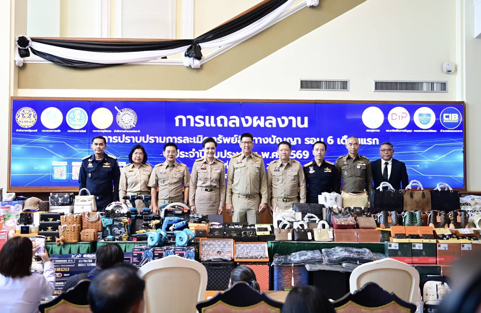 รัฐบาลโชว์ผลงานปราบปรามการละเมิดทรัพย์สินทางปัญญา 6 เดือนแรกปีงบประมาณ 2569 กวาดจับ 332 คดี ยึดของกลางกว่า 1.3 ล้านชิ้น คิดเป็นมูลค่าความเสียหายทางเศรษฐกิจสูงถึง 2,300 ล้านบาท เร่งบูรณาการฝ่ายเศรษฐกิจ ความมั่นคง และกระบวนการยุติธรรม ลุยตลาดย่านการค้า โกดังเก็บสินค้า ด่านศุลกากร และช่องทางออนไลน์ หวังยกระดับความเชื่อมั่นการค้าและการลงทุนของไทยในเวทีโลก